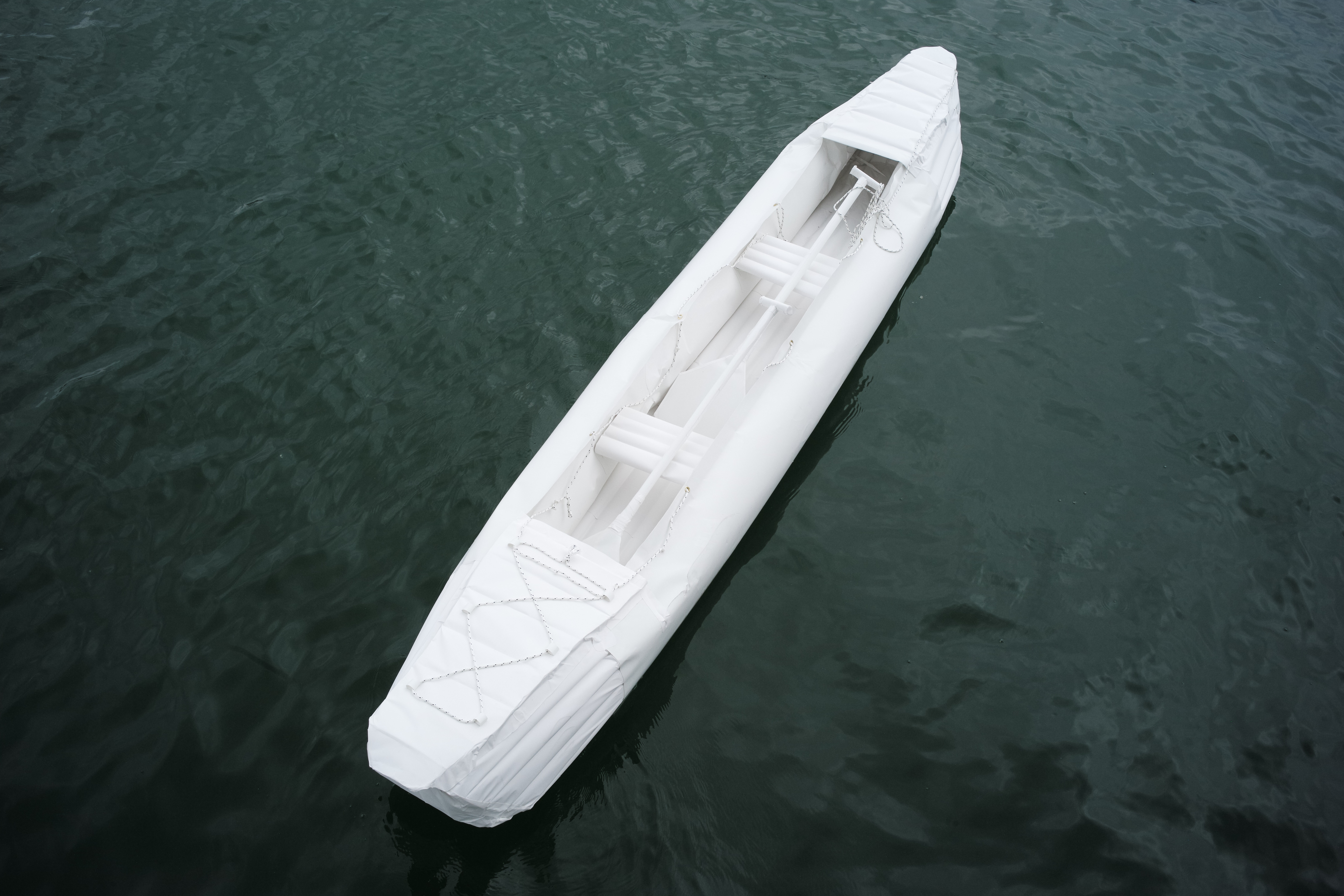 This body of work includes a series of original size replicas of Oudoor Equipment, such as inflatable boats, swim loops, air matresses or parasols. Following the original design, size and built of the objects, the replica seem like a blueprint or an idea of the objects.