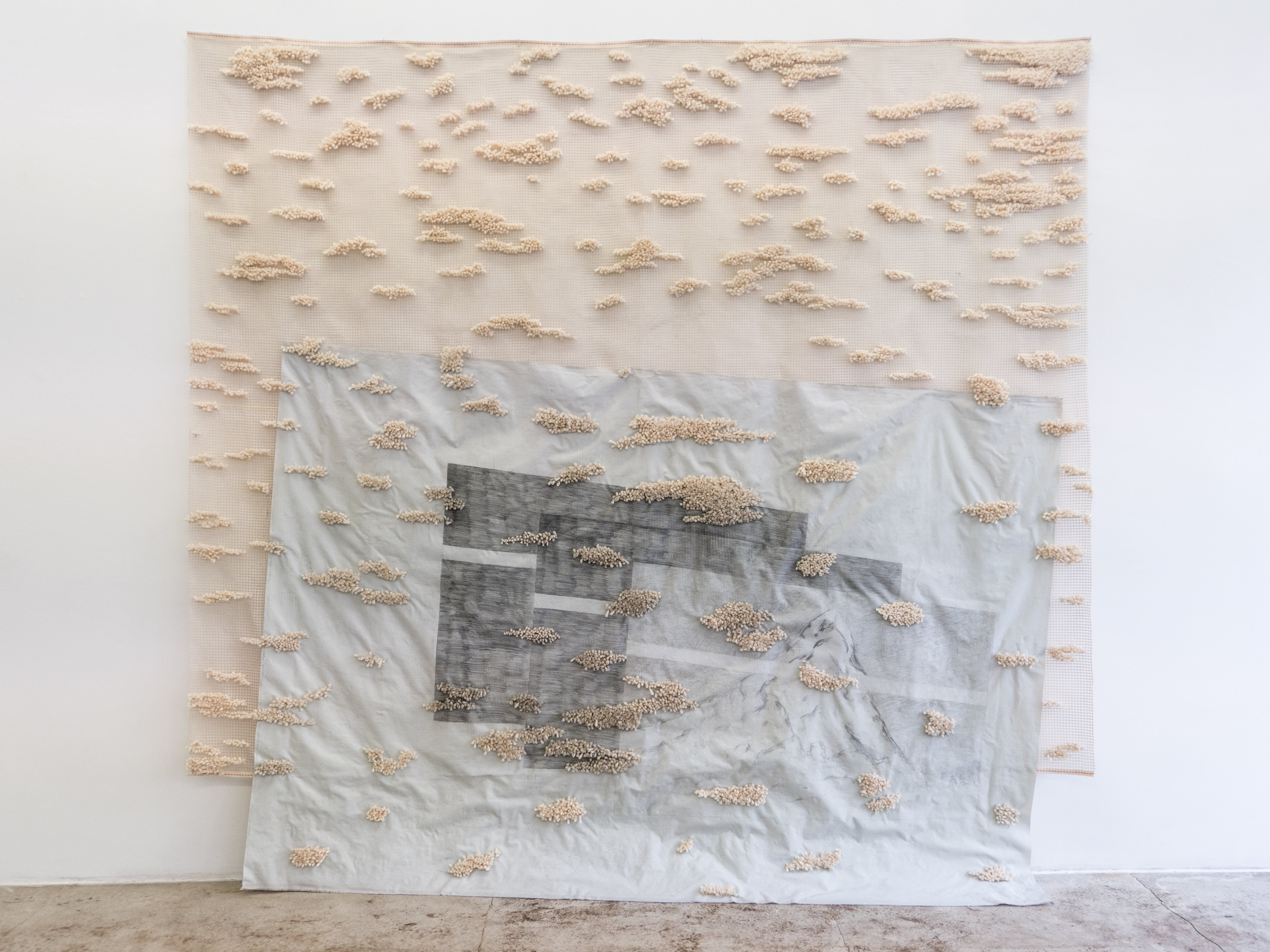 I Wish I Could Climb Drawing No 6, Drawing shaved in Carpet, 196 cm diameter, 2019.