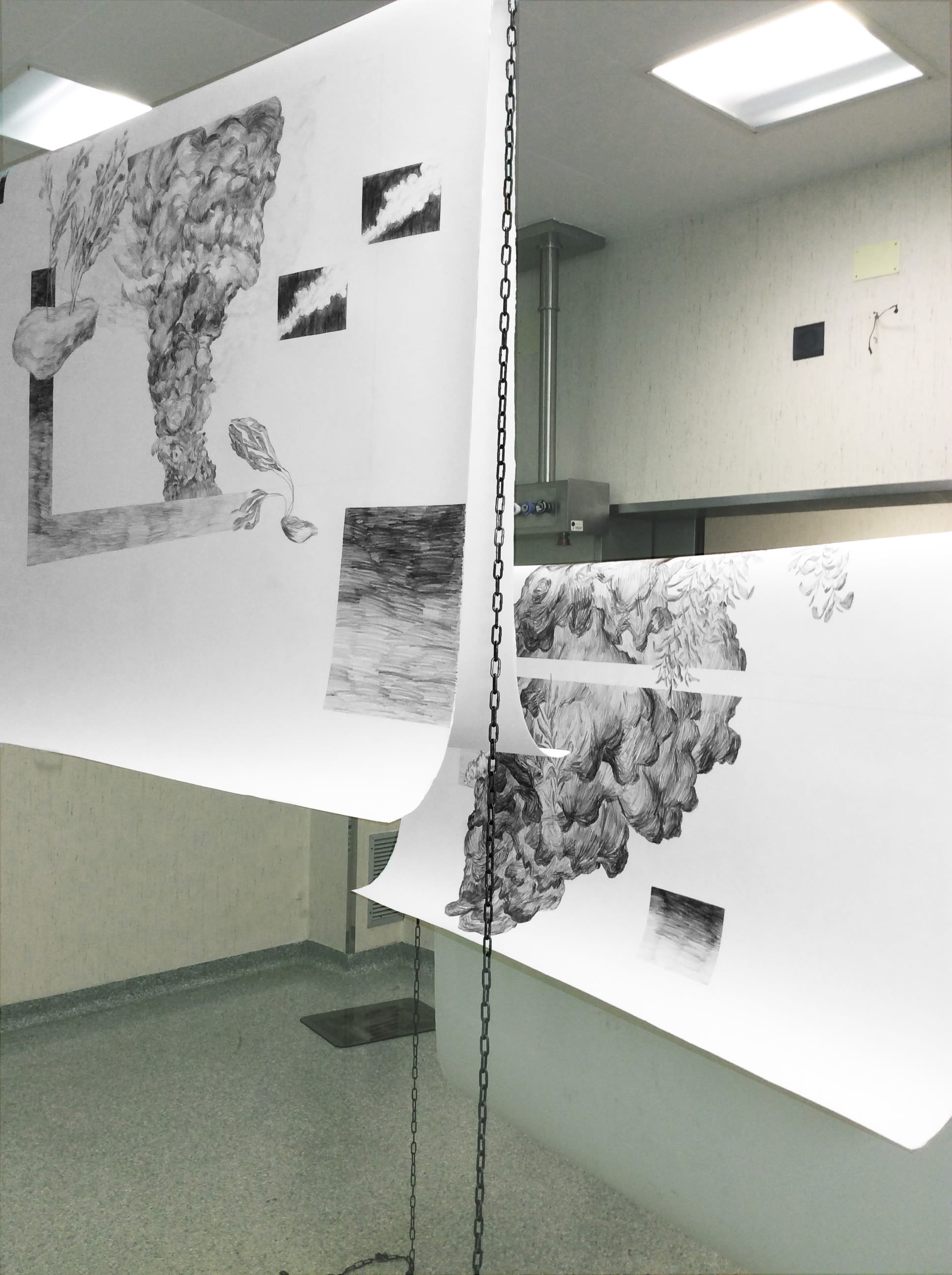 Parallax — an apparent displacement of a body caused by a change in the observer's position — is a phenomenon that implies the experience of navigation in space. Through her work, Kempkes investigates perspectives and the impact of perception on the objects we turn our attention towards. For this purpose, she creates large-format installations, mostly involving drawing and video, that reflect her observations all the while willingly putting at risk the practice of drawing. She disturbs the medium and its processes to make room for change, accidents and inversions.