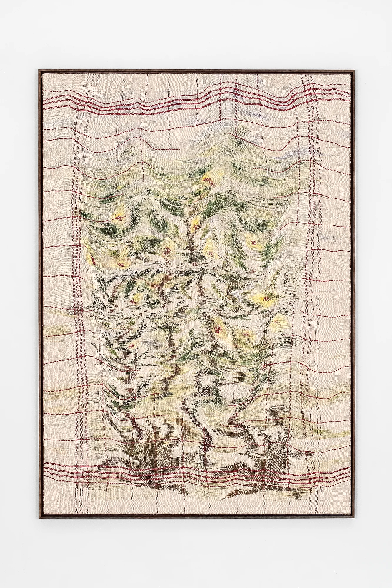 To Harvest A Promise Dissolving In Heat No. 2, 2025., 175 x 125cm, cotton thread, acrylic paint and pigment.