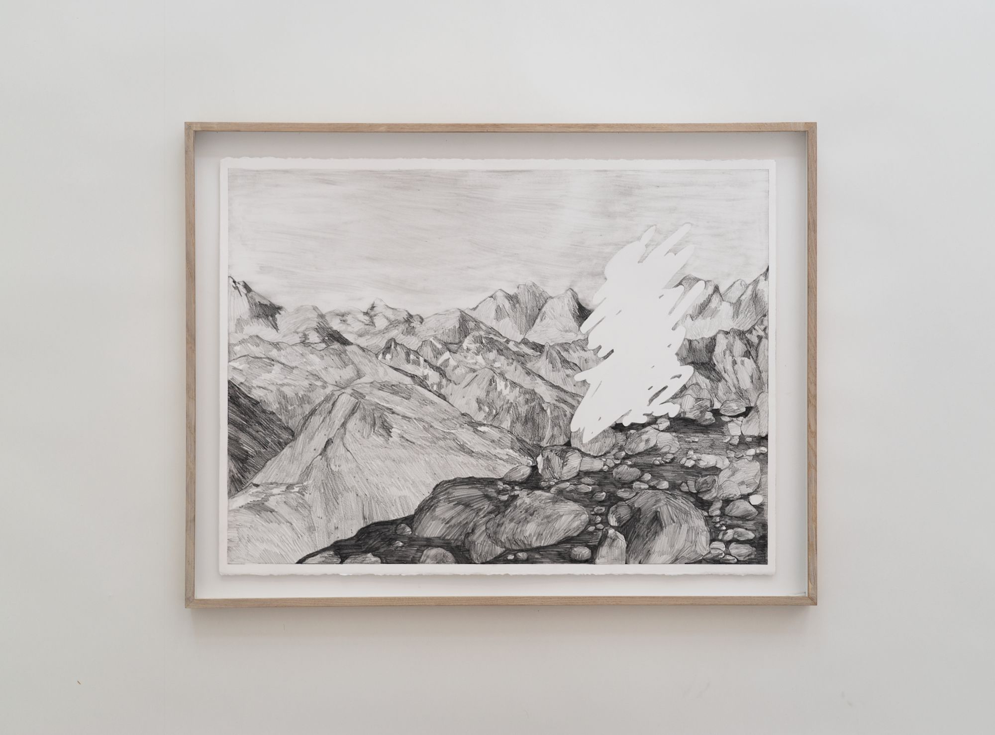 A body of work including hand knotted carpets, a series of drawings with embroidery, silk paper sculptures and graphite drawings
